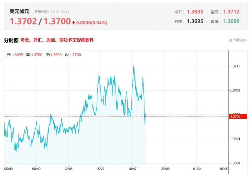 美元兑加元今日汇率最高1.3702 ,最低1.3700 ,涨跌0.0006,涨跌幅0.04% 。