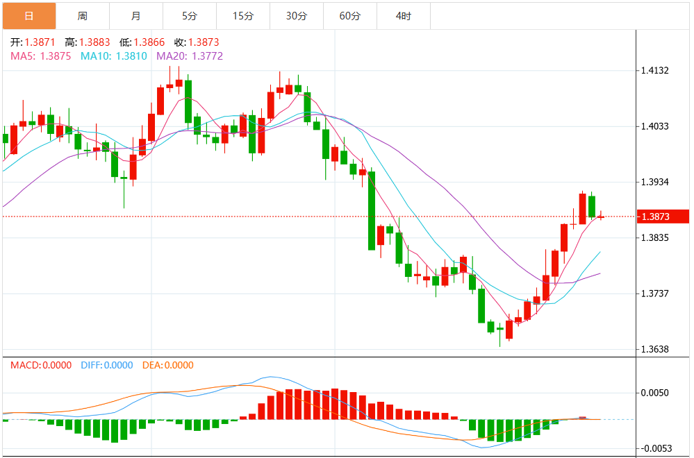 总体而言,强劲经济数据提振的美元与因油价下跌而疲软的加元的结合,使得美元/加元保持在1.3900附近,只要这些基本面因素持续,短期内仍有看涨偏向。