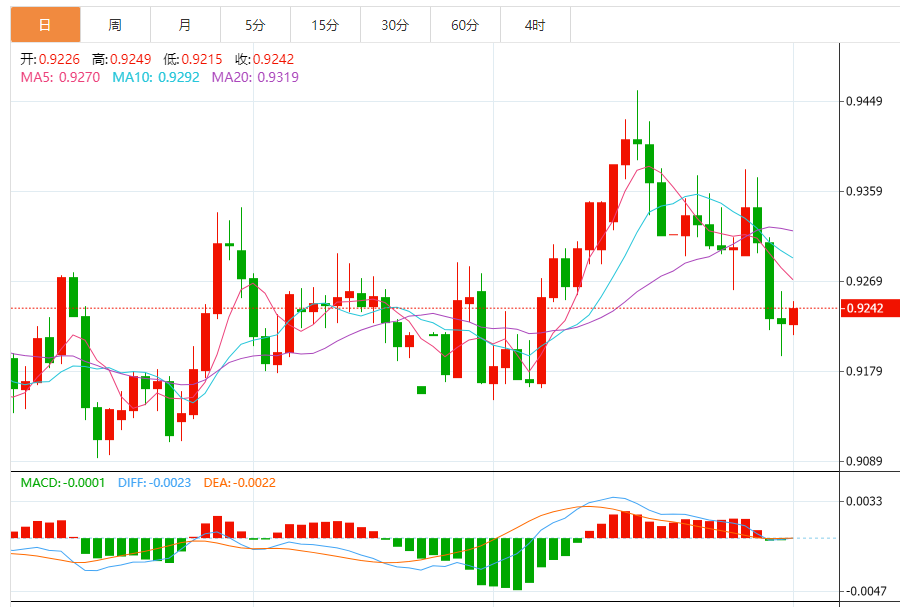 一系列支撑因素帮助美元/瑞郎在本周最后一天吸引了一些买盘,并延续隔夜从0.9200下方或近四周低点的反弹。普遍正面的风险基调削弱了避险的瑞郎,并在一些美元后续买盘中起到了推动作用。