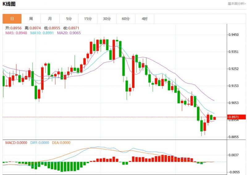 周三盘中,美元瑞郎报0.8970,涨幅0.17%。