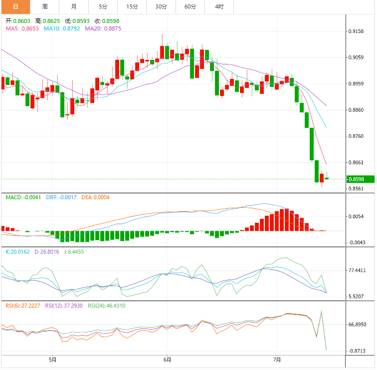 基本面上,美元/瑞郎回落至0.8600附近,扭转了上周五从多年低点回升的走势,交易商在周一欧洲时段寻求更多的线索来捍卫美元的反弹势头。尽管如此,缺乏重大激励因素促使交易员重新评估前一天的修正性反弹,尤其是在美国数据好坏参半、市场情绪低迷以及美联储政策制定者在7月货币政策会议前两週的空白时期。
