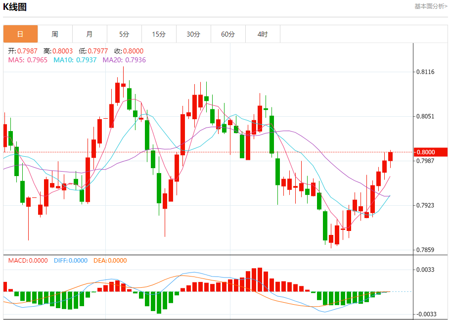 周五纽盘,瑞郎兑美元交投于0.8002,涨幅为0.15%。