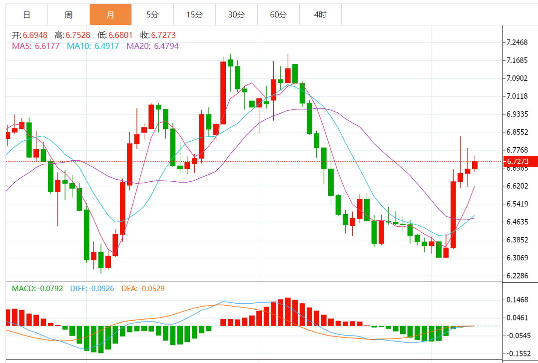 美元/人民币双向市场波动加剧。法国兴业银行(Société Générale)的经济学家预计,该货币对将在第三季度见顶。我们维持美元/人民币将温和上涨的倾向,将在第三季度触及6.80,但将在第四季度回落至6.60,因为与新冠病毒相关的经济破坏最终将消散。有一些因素应该会让美元/人民币在第三季度前保持在高位水平。首先,美国和中国的货币政策将进一步分化。其次,随着市场饱和,中国的出口势头应该会减弱,从而导致未来贸易顺差减少。第三,目前的市场预期是美国消费者支出疲软,美国资产价格下跌。美国消费增长疲软最终可能对包括中国在内的新兴市场资产产生连锁反应。我们也怀疑美国降低关税对美国当局来说是一个可行的选择。 ”
