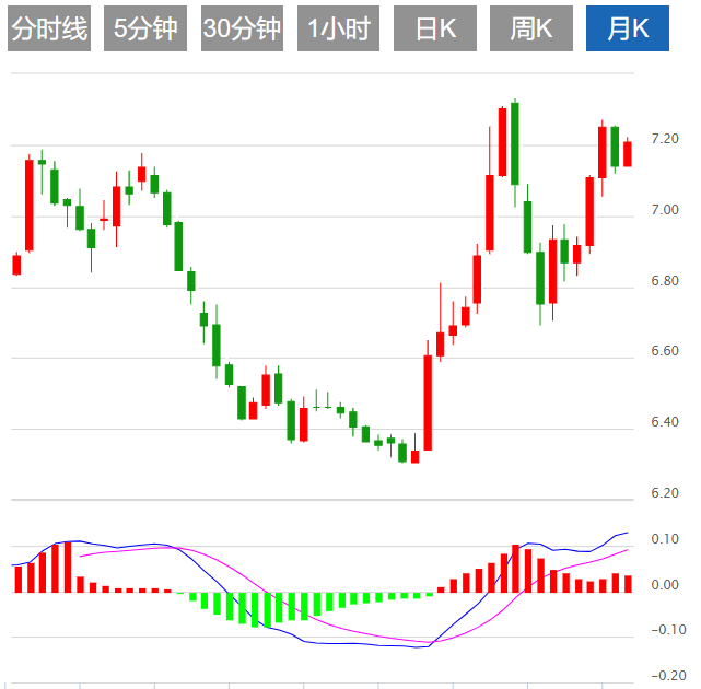 总体来看,国内经济复苏不及预期、美国就业和通胀数据超预期回落、美联储加息预期变化、中美利差倒挂和货币政策分化等因素引致本月人民币总体呈现走弱态势,在7.1265至7.2620区间内呈现双向波动态势。