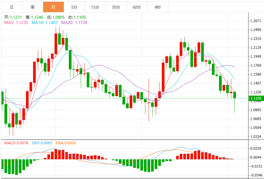3月31日,截止发稿,欧元/美元累计下跌0.99%,徘徊于1.1108附近。本月欧元/美元走势震荡,欧洲央行将在年底某个时候启动加息周期的猜测,应该会加强欧元的部分强势,同时德国收益率上升、通胀上升、经济复苏的良好步伐和该地区关键基本面带来的良好结果也对欧元的反弹起到了支撑作用。