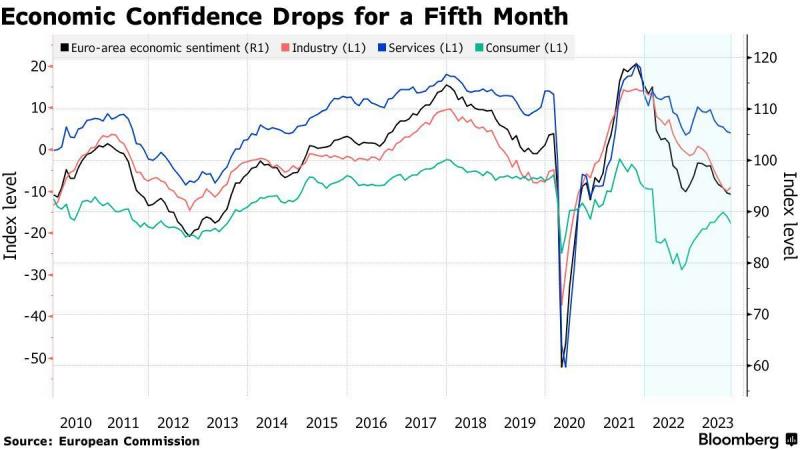 欧元区经济信心连续第五个月下滑,进一步给该地区的前景蒙上阴影。欧盟委员会公布的欧元区9月经济景气指数下滑至93.3,低于上一个月修正后的93.6,但好于经济学家的预期。