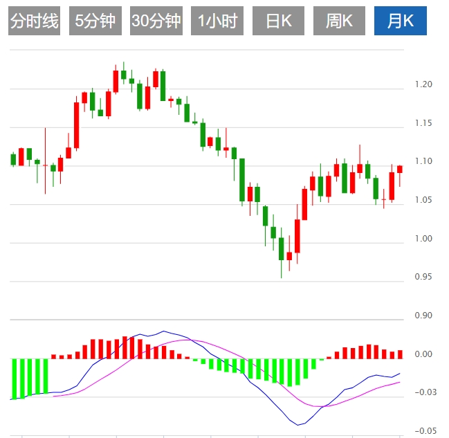 周线图看涨潜质更为明显,预计今后几个月将上涨。欧元/美元处在20和100简单移动均线上方,而持平的200简单移动均线在1.1160附近构成动态阻力,这是欧元/美元突破1.1000大关后的首个目标。同时,技术指标从中线附近反弹后,维持上涨动能,处在正区。