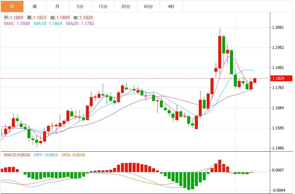欧元/美元的技术图形显示,该货币对中性偏向下行,因为它已实现连续的低点,而最近的高点在1.1926,仍低于年度高点1.2079。