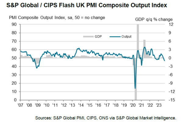英国PMI综合指数跌至46.0,衰退风险加剧支持英国央行暂停