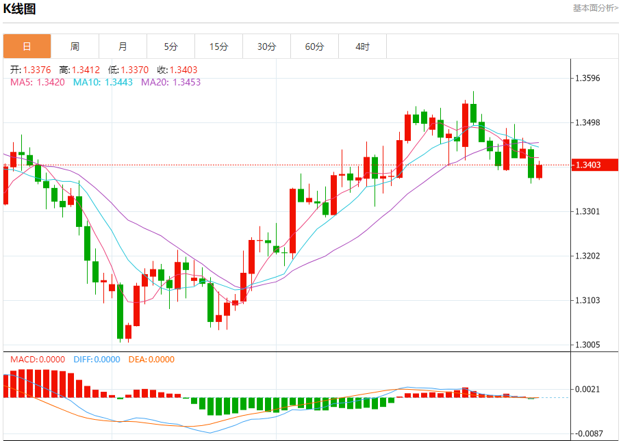 周五欧市盘中,英镑兑美元交投于1.3405,涨幅为0.20%。