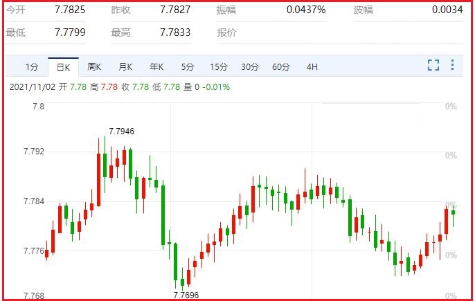 1.日线图上,美元对港元汇率收阴线,收盘价受MA5支撑,短期看跌。