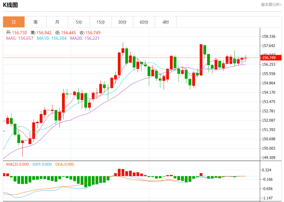今日周四,截止目前美元兑日元报156.785,上涨0.02%。