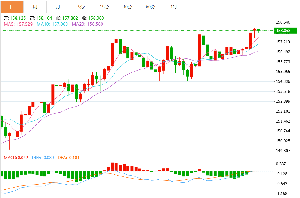 技术上,50日简单移动平均线(SMA)持续上升,美元/日元在其上方运行,强化了强烈的看涨偏向。 该SMA在156.00附近提供了动态支撑,买方保持主导。 移动平均收敛/发散(MACD)在零线附近显示出看涨交叉,直方图转为正值,动能改善。