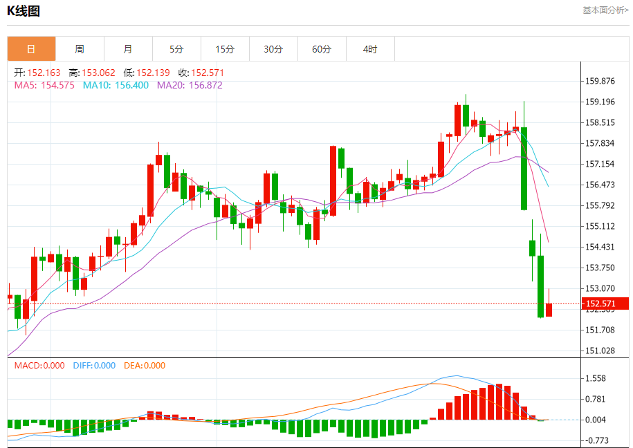 周三纽盘,美元兑日元交投于152.577,涨幅为0.25%。