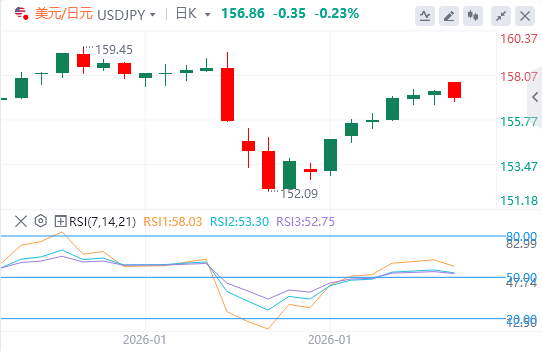 与此同时,今天早些时候发布的数据显示,日本12月实际工资连续第12个月收缩,名义工资增长略低于消费者通胀的放缓。这使日本央行在12月将利率上调至三十年来最高点后,仍面临谨慎行动的压力。此外,中东局势缓和的积极市场情绪抑制了避险日元的进一步升值,帮助美元兑日元在156.20附近盘中回落。