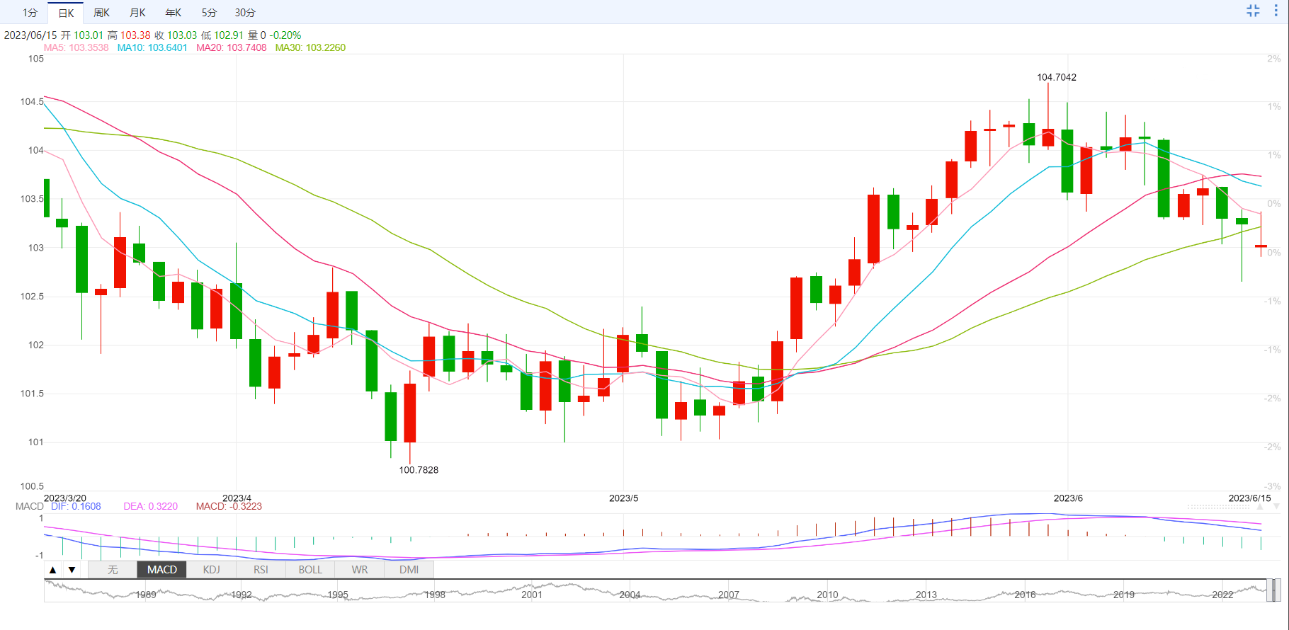 在下行路上,103.05(100日移动均线)将成为确认趋势变化的首个支撑位。如果突破,观察美元指数在55日移动均线102.57附近的反应,以评估是否会进一步下跌或上涨。