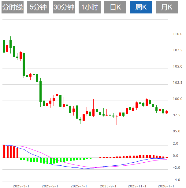 下方的关键支撑区域首先关注 96.30 一线,该位接近过去三年的低点。如果该区域被有效跌破,将为长期 200 月均线(目前位于 92.00 上方)带来新的关注机会。如果跌破该水平,下探至 90.00 下方的区域——2021 年低点附近——则将成为下一重要防守区间。