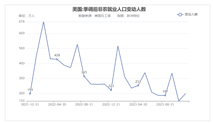 不过,即使美国劳动力市场出现了进一步的放缓,但也表现出韧性。因数千名汽车工人和演员在罢工后重返工作岗位,2023年11月就业增长加快,但投资者仍然相当确信美联储在当前周期已完成加息,不过,关于2024年第一季度启动降息的押注有所下降。非农就业报告显示,美国2023年11月就业岗位增加了19.9万个,失业率降至3.7%。由于就业岗位增幅仍高于每月10万个,这给金融市场对美联储最早将在2024年第一季度降息的预期“泼了冷水”,提醒人们劳动力市场仍然紧张,尽管通胀持续性不再是一个挑战,但美联储将继续保持耐心。