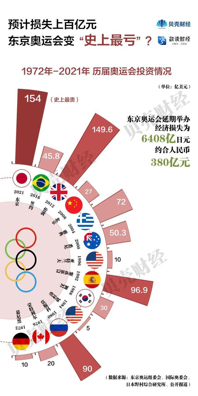 8月8日,延期一年的第32届夏季奥运会闭幕。受新冠疫情影响,日本东京奥运会预计将成为“史上最亏”的奥运会。 疫情之下东京奥运会的经济账本,新京报贝壳财经记者为你“盘一盘”。 01 损失上百亿元 史上最贵的奥运会变“史上最亏” 新冠疫情席卷全球,为什么东京奥运会“咬着牙”也要举办? 其主要原因来自于巨额