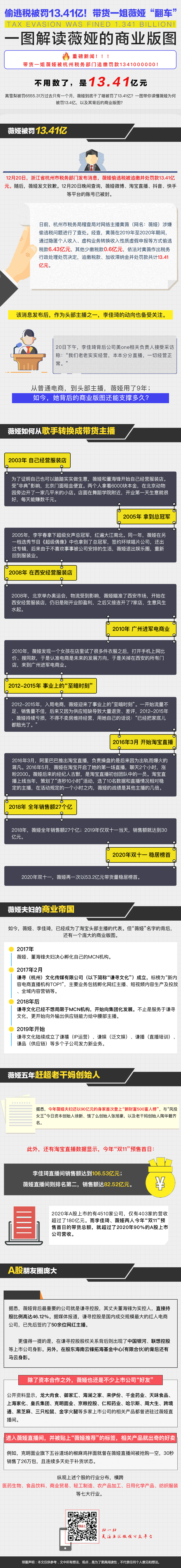 薇娅(真名黄薇)正在经历“至暗时刻”。 12月21日下午两点,中国网络社会组织联合会宣布,撤销黄薇网络诚信宣传大使。相关公告显示,黄薇偷逃税款行为造成了极为恶劣的社会影响,已不符合网络诚信宣传大使聘任条件。 薇娅因偷税漏税被罚13.41亿消息一出,外界哗然。事件发生后,这位直播带货“一姐”淘宝直播账号被冻