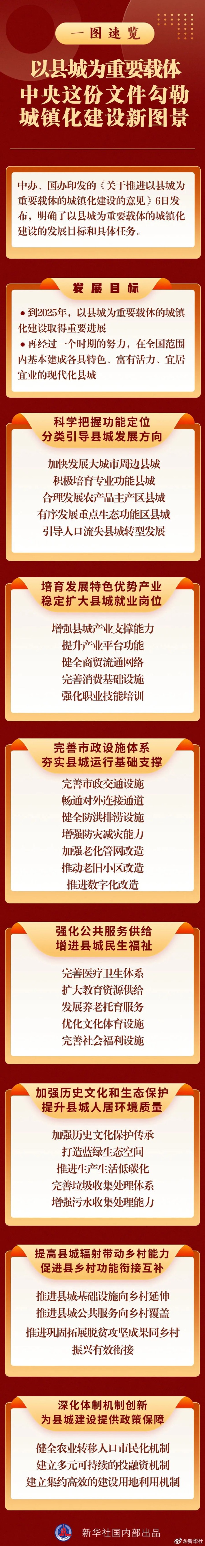 近日,中共中央办公厅、国务院办公厅出台《关于推进以县城为重要载体的城镇化建设的意见》。意见全面系统提出县城建设的指导思想、工作要求、发展目标、建设任务、政策保障和组织实施方式。 这些部署表明,推进县城建设对促进新型城镇化建设、构建新型工农城乡关系,具有重要意义。 对此,国家发展改革委规划司有关