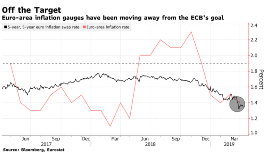 周三(4月10日)欧洲央行政策制定者完全有理由对该地区的经济保持谨慎态度。美国已经抛出了一个新的关税威胁,意大利政府今年已经放弃了经济增长的希望,而英国脱欧仍然悬而未决。最重要的是,国际货币基金组织(IF)周二再次下调了全球经济增长前景。 除了各种各样的担忧之外,它们是欧洲央行表示风险偏于“下行”的原因,