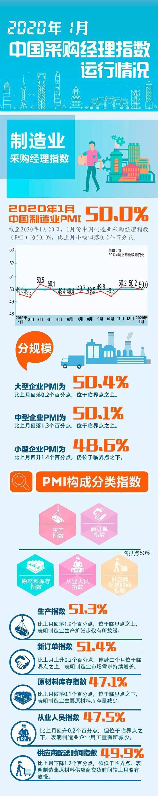 因本月采购经理调查时点在1月20日之前,调查期间新型冠状病毒感染的肺炎疫情影响尚未在调查中充分显现,后期走势需进一步观察。