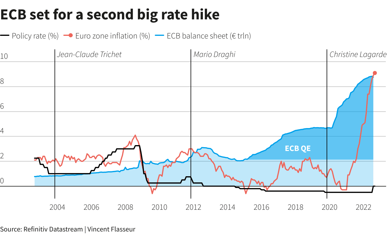 更大的举动将表明遏制通胀率远高于欧洲央行2%目标的决心,并有助于提高央行的信誉。欧洲央行选择了7月份大于预期的举动,其他大型央行也大幅加息。