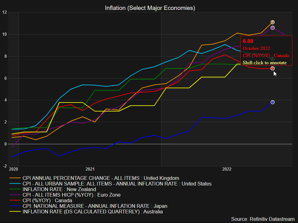 相对而言,加拿大的通货膨胀可能要糟糕得多,并且比英国,美国和欧元区好得多。