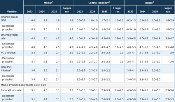 今年的最终利率仍然保持在5.00-5.25%。但预计2024年将小幅降息。2023年和2024年的增长预测有所下调。今明两年的核心通胀预测略有上调。