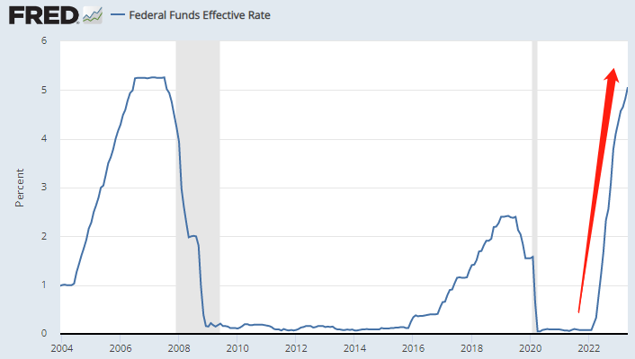 自去年3月开启本轮货币紧缩周期以来,美联储已经累计加息500基点,联邦基准利率也从0%-0.25%上升至5%-5.25%。这也是美联储自上世纪80年代前主席保罗·沃尔克在任以来的最激进的加息周期。