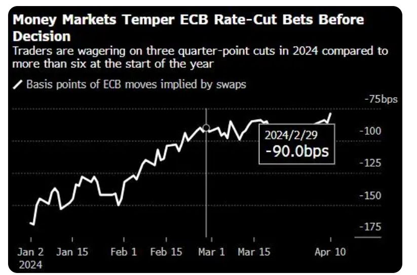 欧盟统计局的初步数据显示,欧元区3月份通胀率放缓至2.4%,好于预期。剔除能源、食品、酒精和烟草价格的核心通胀率也从2月份的3.1%降至2.9%,进一步增加了即将降息的可能性。