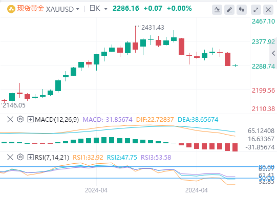 从日线图上看,金价周二收于关键的21日简单移动平均线(SMA)2,338美元和上升趋势线支撑位(当时为2,330美元)下方。14 天相对强弱指数(RSI)目前位于 50 水平下方,周二下行击穿了后者。下行突破关键的日线支撑线和看跌的 RSI 指标表明,金价下行的阻力似乎最小。近期支撑位在心理价位 2250 美元,跌破后将挑战 50 日均线 2223 美元。