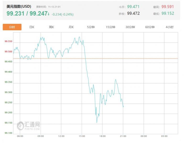 周四(11月13日)亚洲时段,美元微幅上涨,政府停摆危机解除提振美元信心,今日美元指数最新报99.247,跌幅0.24%,美国众议院通过一项短期拨款法案,以222票赞成、209票反对的结果正式结束了长达43天的政府停摆。