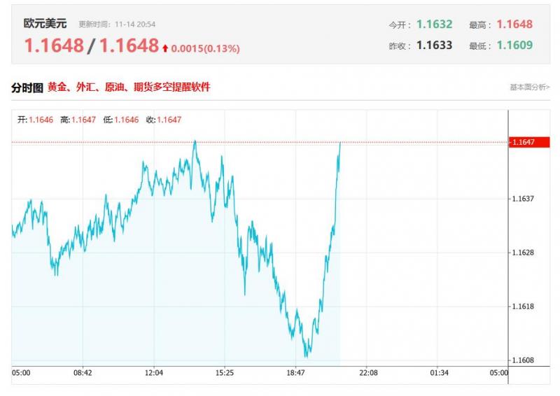 周五(11月14日)亚市早盘,欧元/美元维持温和涨势,最新欧元兑美元汇率报1.1648,涨幅0.13%,受美元持续回落以及美国政府43天停摆结束后市场乐观情绪升温的提振,周四欧元/美元连续第三个交易日上涨,触及1.1650附近的新高。展望未来,投资者预计将关注周五公布的欧元区第三季度GDP初值数据。