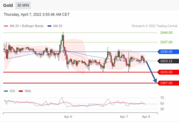 在 1930.00 之下,看跌,目标价位为 1915.00 ,然后为 1907.00 。