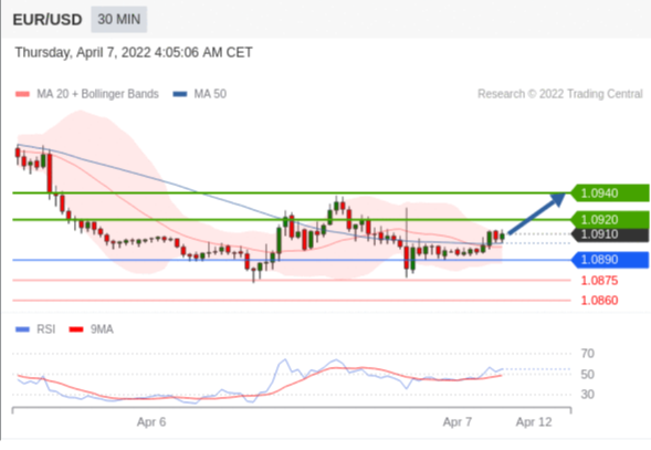 在 1.0890 之上,看涨,目标价位为 1.0920 ,然后为 1.0940 。