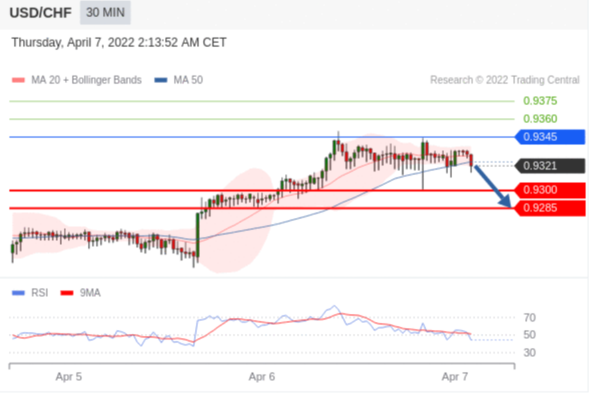 在 0.9345 之下,看跌,目标价位为 0.9300 ,然后为 0.9285 。