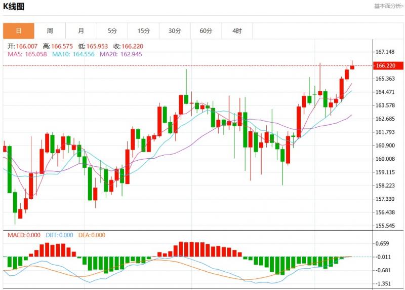 周三盘中,英镑日元报166.204,涨幅0.16%。