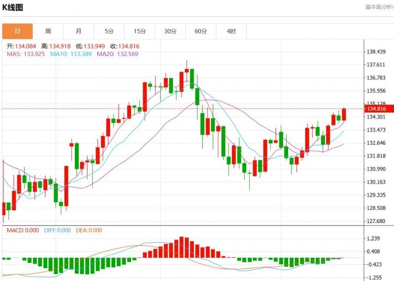 今日周三,美元兑日元报134.822,涨幅0.57%