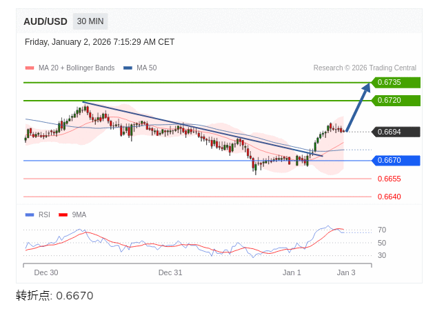 今日分析: 在 0.6670 之上,看涨,目标价位为 0.6720 ,然后为 0.6735 。