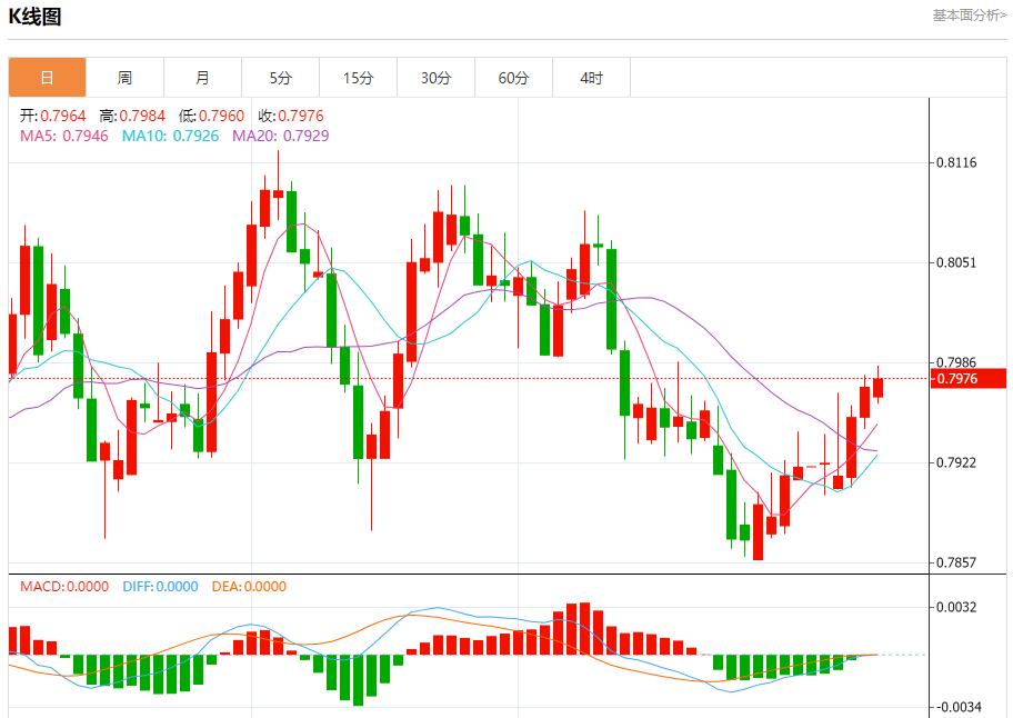阻力位:0.8020 0.8005 0.7990