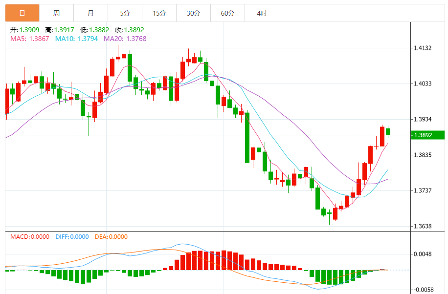 周一,美元/加元徘徊于1.3894下方,现交投于1.3892附近,跌幅0.15%。