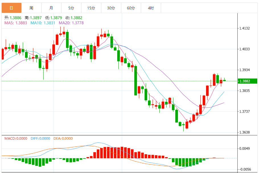 周三,美元/加元徘徊于1.3885下方,现交投于1.3883附近,跌幅0.02%。