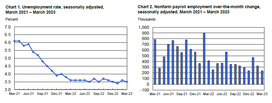 报告的其他细节显示,失业率从3月份的3.6%降至3.5%,劳动力参与率从62.5%提高到62.6%。最后,以平均小时收入衡量的年工资通胀率从4.6%降至4.2%,而分析师估计为4.3%。