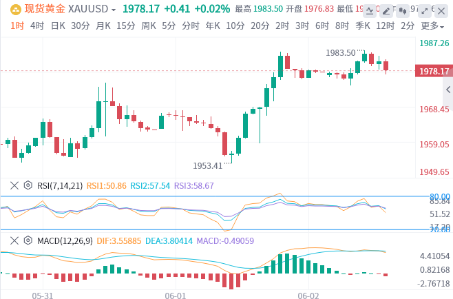 和前值相比,投行认为5月非农增速下滑,相比之下失业率和平均时薪年率和前值相差不大。若数据显示5月非农增幅真如投行预测那样下滑,黄金有望获得提振后继续上行。