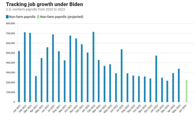 一组数据显示,虽然美联储在过去一年多的时间里已经累计加息了逾500个基点,但美国就业岗位眼下仍在以每月数十万的速度增长——今年头五个月,美国已经新增了157万个工作岗位,这是有记录以来(1939年迄今)1月至5月新增就业人数的第十大增幅,今年每月平均31.4万个新增就业岗位的增速,远远超过了疫情前的水平。