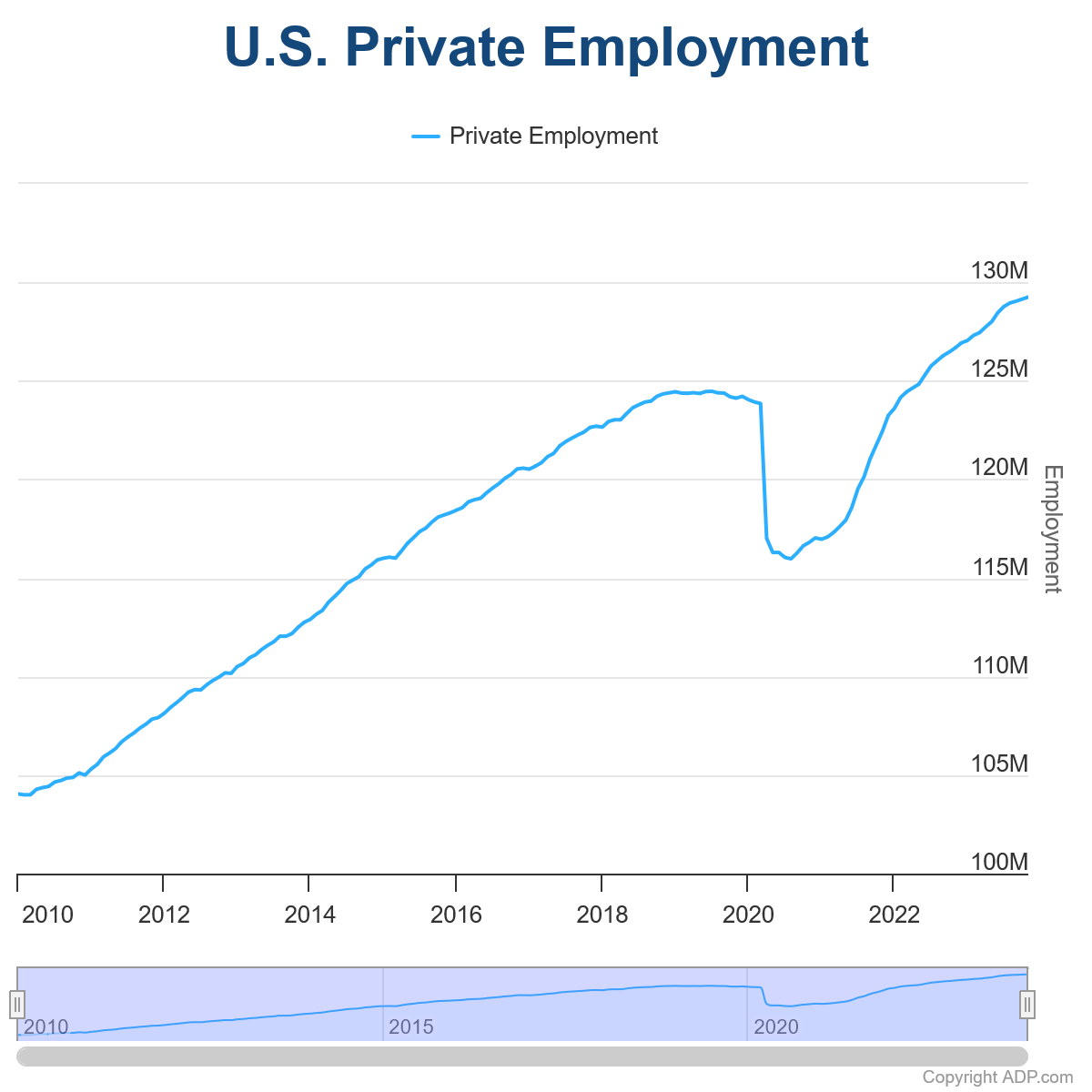 ADP首席经济学家Nela Richardson指出,在疫情后的复苏期间,餐馆和酒店是最大的就业岗位创造者。但这种就业岗位增长趋势已经过去了,休闲和酒店业就业岗位的回落趋势表明,到2024年,整个经济的招聘和工资增长将更加温和。