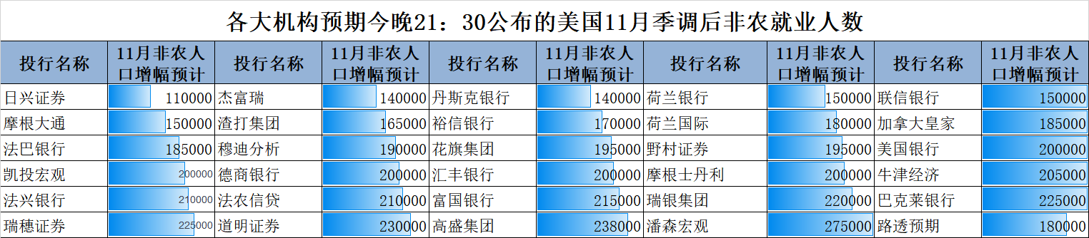 美国将于周五公布11月非农就业数据,目前市场预计其将增加17.5万人。失业率则保持在3.9%的近两年来最高水平。