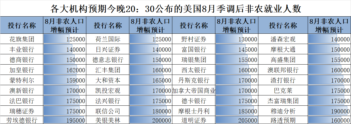 在7月份令人失望的就业数据和去年薪资大幅下调之后,美联储官员和市场参与者正在密切关注将于周五公布的8月份就业数据,尤其是如果这一报告又是一份疲软的报告的话,美联储可能会大幅降息。市场预计,美国企业的招聘步伐将会放缓,失业率将会下降。
